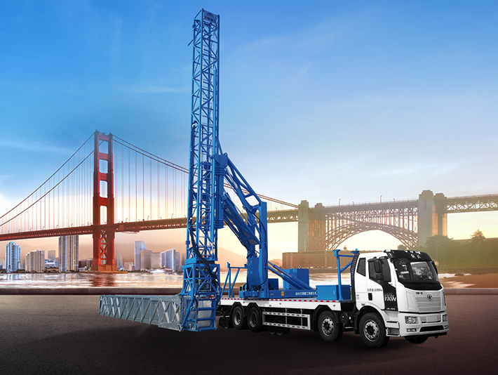 采用机电、液压、信息一体化技术,配备底盘稳定设备、应急设备、备用电源等;配备2套以上的控制系统,便于桁架的展开和桥下作业通道的调整控制;检查操作时必须对操作通道进行测试。已进行一定程度的维护,以方便检验或维修人员的操作;配备液压驱动自走系统,具有自动行走功能,检测车在作业过程中可在桥上行走,无需收回桁架。是自主研发的适用于大中型桥梁病害修复和预防性检查的专用车辆。采用机电液一体化技术,坚持原车优异的整车动力和燃油经济性。