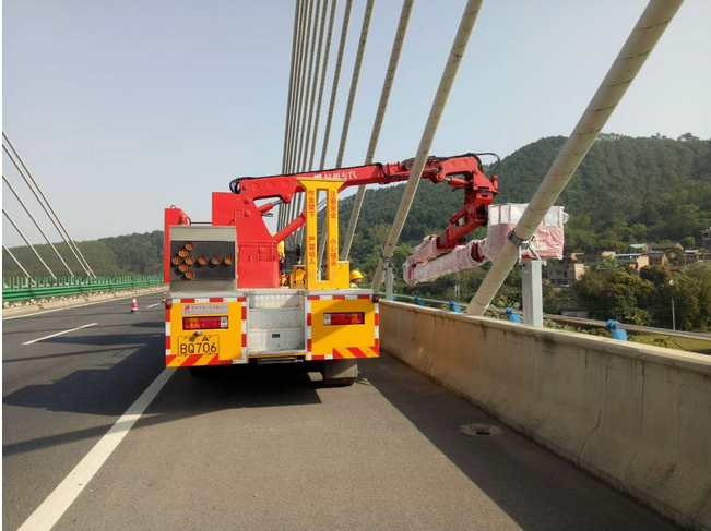 桥检车展开工作平台前注意支腿安放是否到位;展开工作平台时后方应挥红旗提醒来往车辆。作业过程中,若发现车辆出现任何异常问题,应立即停止工作,待检查或修复后,方可继续工作。