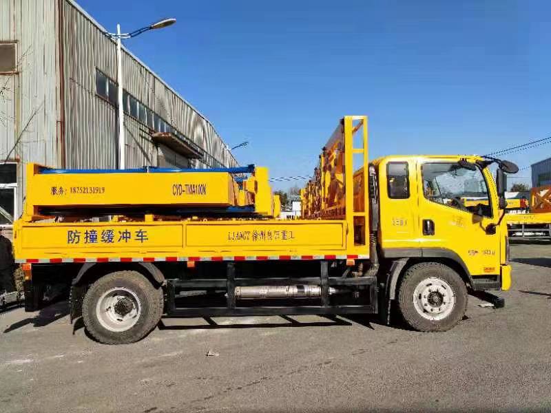 通过防撞缓冲垫的变形吸收撞击的能量,对施工人员及设备进行有效的保护,同时限度地保护撞击车辆内人员的安全。缓冲模块可以自动升降并且锁定于两种位置。当处于工作状态时,模块将被锁定在水平位置。当行驶状态时,模块将被锁定于竖立位置以提高行驶机动性能,该产品有实施作业方便、不中断交通、工作机动灵活、作业效率高、操作方便、安全可靠性高等突出优点,尤其适用于高速公路和市政道路日常养护的施工。